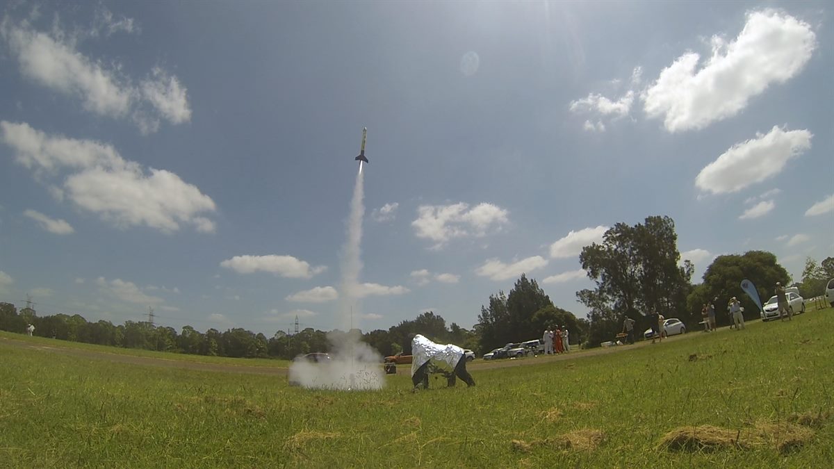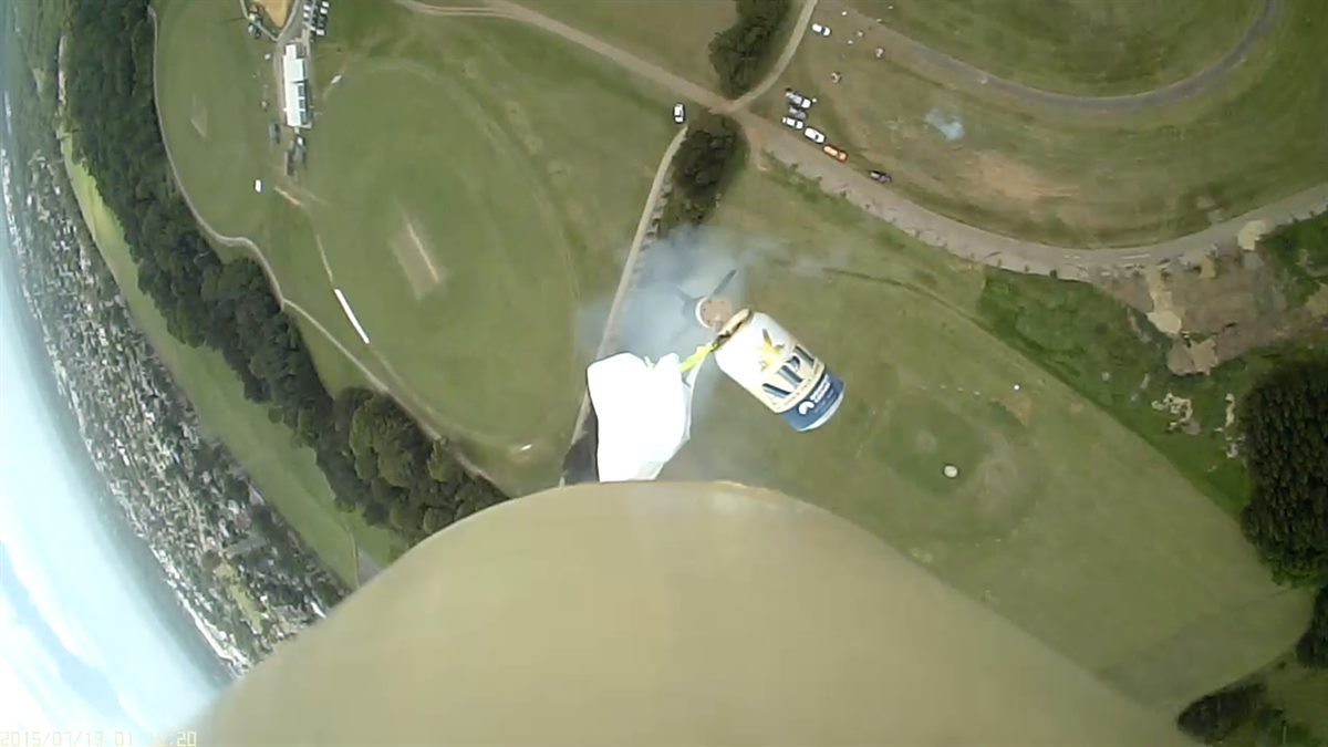 I also put a camera on the rocket so that it could film the beer can getting ejected from the rocket. This shot turned out really well as the rocket had very little roll and the can was clearly visible as it was ejected near apogee. They ended up using this in their video, along with a couple of ground shots from my GoPros.