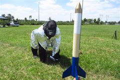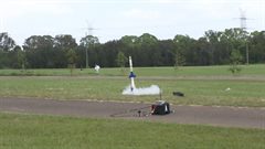 The rocket on the first launch ended up stuck in the trees. But thankfully we had the rocket retrieving pole and it was relatively easy to get the rocket down.