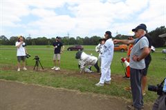 During testing we found that some of the helicopters wouldn't open properly and would basically lawn dart down. Out of the 30 or so released, it turned out that about 1/3 of them didn't open and so there was a grouping of them down range. The others floated a lot further.