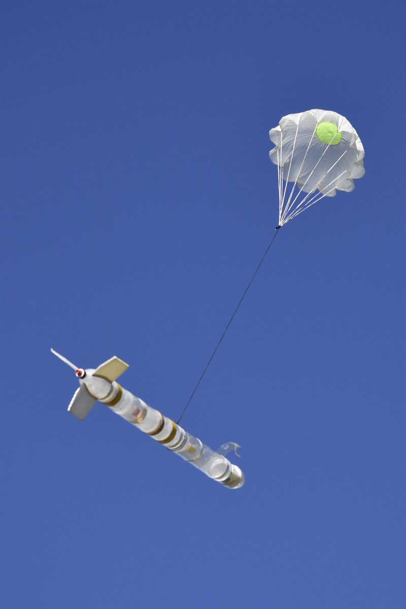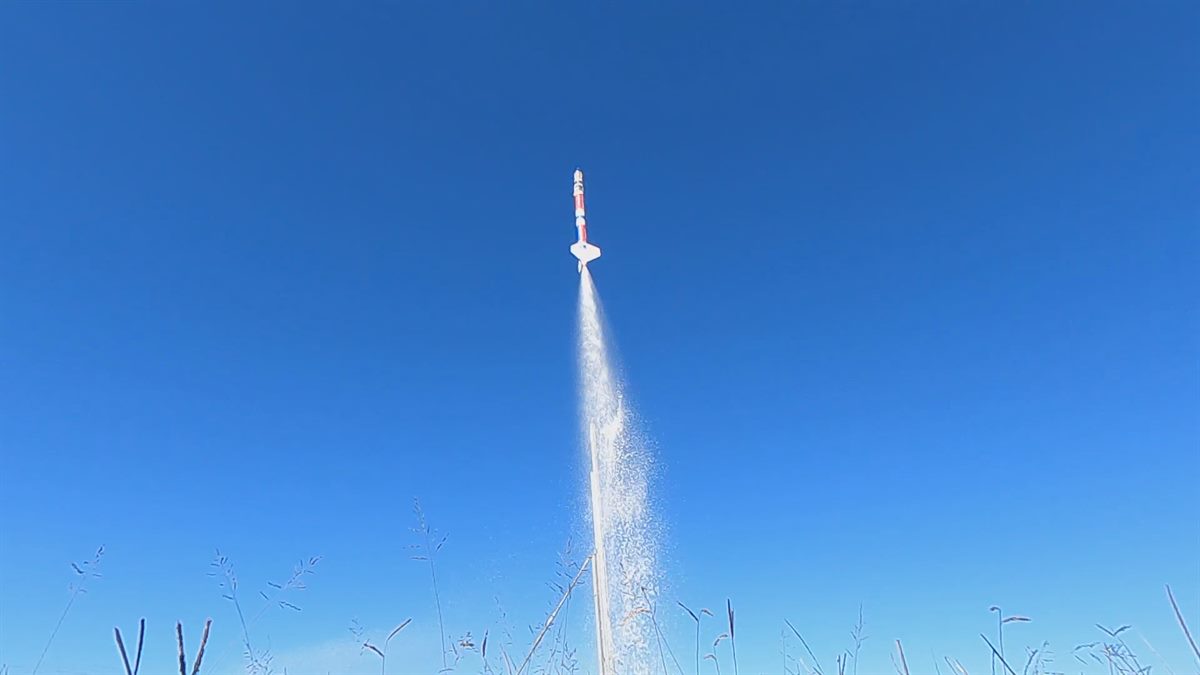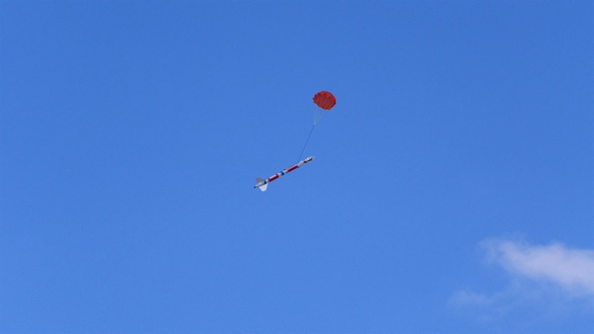 For the third flight we again repeated the flight at the same pressure, and the same amount of water but this time without any foam, although there was some residue inside the rocket. The rocket flew well again with the parachute safely deploying near apogee and the rocket again landing safely downrange.