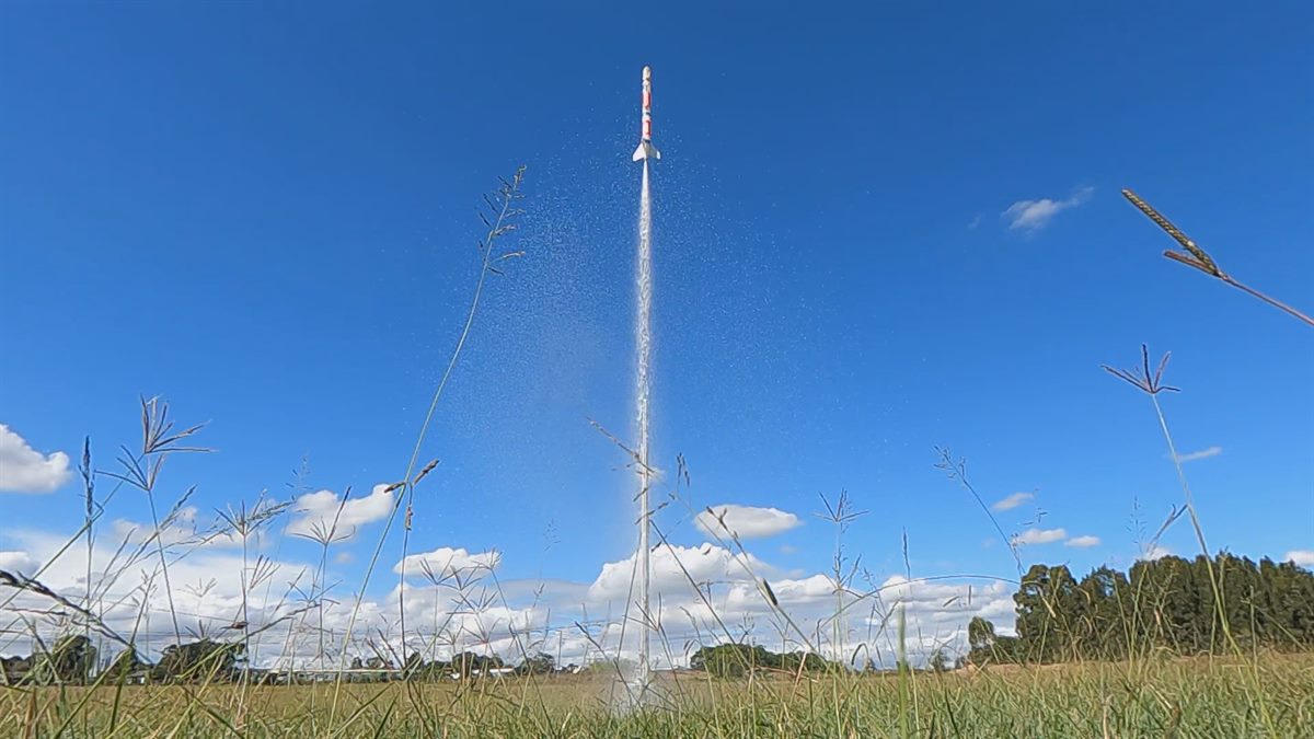 On the first launch we pressurised it to 100psi. But just as we were getting up to pressure, the rocket self launched. The 3D printed nozzle broke apart so the rocket took off. The parachute did eject around apogee but got tangled on one of the fins and so the rocket came down hard and damaged the nosecone and dented the top bottle. That was just unlucky.