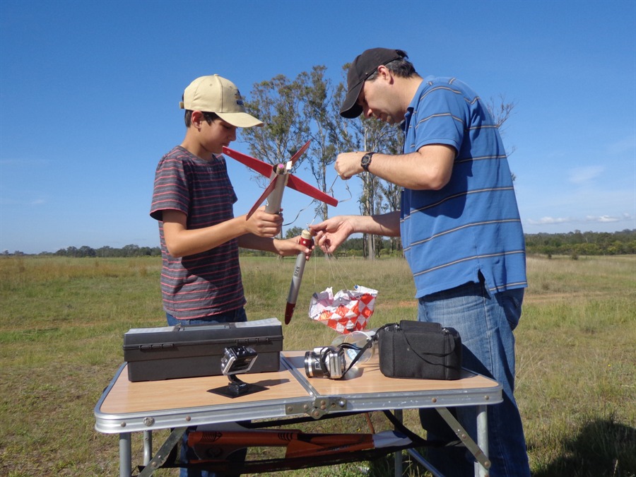 using 22mm full-bore tornado tubes to join the segments. Launched