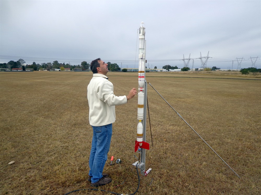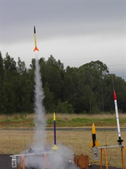 On this launch we didn't bring any water rockets as the experiment we were working on wasn't quite finished. We ended up flying 5 pyro rockets, with 5 good launches and recovery. It was a little drizzly but still fun. Here are some of the highlights from the launch. As you can seen in the photos it was quite smoky from the back burning happening some 80km away in the Blue Mountains.