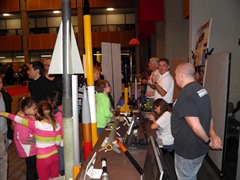 The club again attended the Mac Uni Astronomy Open Night this year. This is always a good opportunity to meet people and talk about rockets. There were quite a few people in attendance this year, probably double that of last year so we had our hands full fielding questions. As a result we ended up with several families attending the following club launch which was great to see. Here are some photos from the night. We didn't even get a chance to go outside and have a look through the telescopes.