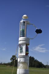 We used the Axion G6 rocket to boost this experiment as the payload with the parachute mechanism is fairly heavy. We set the deployment timer delay to release the parachute well after apogee so that we could watch the liquid as the rocket passed through apogee in near-Zero G. We launched the rocket at 205psi with 1.5L of water and no foam to get maximum acceleration off the pad.