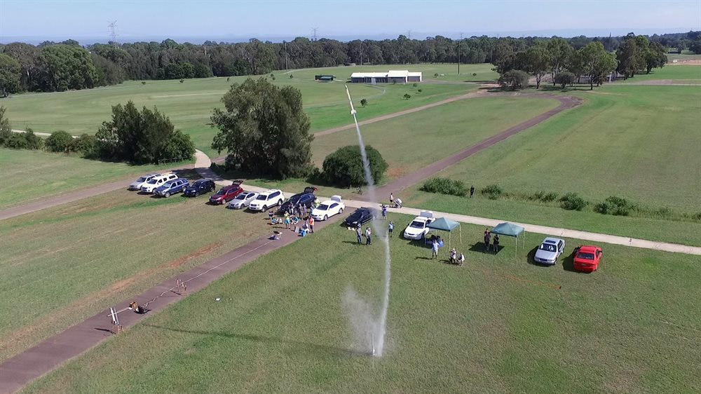 The rocket flew well and only slightly angled off the pad in the direction where the camera was. The drag of the camera and bracket was partially offset by the weight of the liquid on the other side of the rocket.