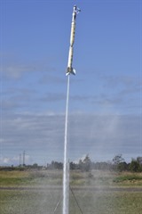 This day was also NSWRA's competition day so a few more people were in attendance. For demonstration we flew a couple of flights with the Axion II rocket. The boys had entered their pyro rockets into the competition too. Paul's Black thunder rocket took off at a bit of an angle, which was probably due to rod whip and crashed nose first just before the parachute deployed. We normally use a 3 second delay with this rocket, but we only had motors with 5 second delay. The top of the rocket was crushed, but should be fairly easy to repair by replacing the top 3rd of the body tube. The other flights went well otherwise.