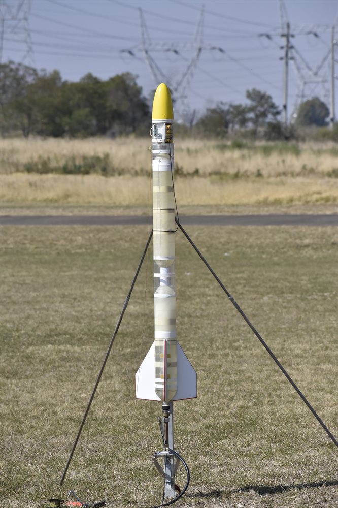 As we've decommissioned the Polaron G2 rocket, this week we decided to convert one of the full Polaron G2 boosters into a smaller version of the rocket. The G3 rocket consists of only two reinforced spliced quads with the original nosecone and fins. It also fits under the 1.5Kg limit we have at Whalan Reserve. We decided to use the 16mm nozzle with launch tube, though we did have to cut 5 cm off the end of the launch tube to fit in this rocket.
