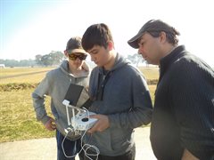 We also brought the Phantom 3 Pro with us to get some areal views of the launches. We wanted to get a shot of the rocket using the high speed capability of the GoPro and so we 3D printed a frame that was going to mount underneath the drone and hold the GoPro. Initial testing with the frame mounted by itself looked like it was going to work. But as soon as we added the GoPro, the whole drone just started shaking. It looks like it hit a resonant frequency. This would have made it very difficult to control the drone and the footage would have been unusable. We tried several different modifications but always with the same vibration. In the end we opted for suspending the frame on 4 wires hanging about 30cm under the drone. It would mean that the frame platform would be free to swing, but would be isolated from the vibration.