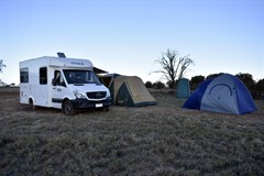 For the trip to Thunda 2019 we again rented a motor home for my dad, my boys and me. My wife decided to sit this one out this time, and I don't blame her. 5 days in 30 degree C dusty paddock isn't something one looks forward to, other than those interested in rockets of course. We spread the 850km trip to Queensland over a couple of days so that it wasn't too much driving in any one day. There was even someone who drove all the way from Perth. That's over 4,000km one way! That's total dedication. We again had our couple of tents with us which we mostly used for storage and sleeping.