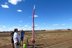 On this day it was quite windy again, but we set up our low pressure launcher and decided to launch a flour rocket. We pressurised it to 120psi and launched it. The flight was a normal flight and the rocket recovered well.