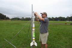 Today we had another go at flying a rocket with Paper helicopters. Last time we flew small ones made out of regular A4 paper. But they were quite difficult to see against the clouds. This time we decided to make slightly larger ones and with coloured paper on one side so that they would flash colours as they would spin making them more visible.