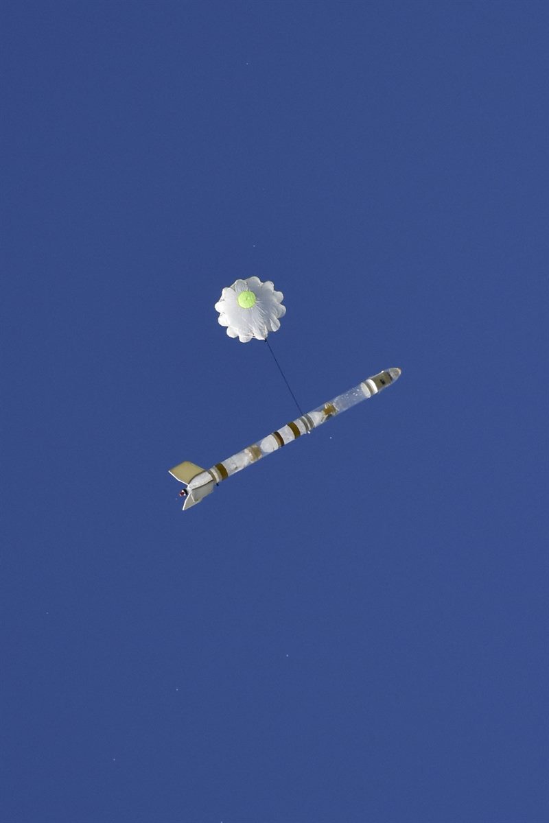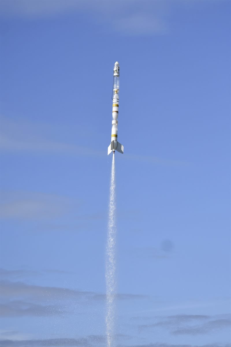 For the third flight we again repeated the flight at the same pressure, and the same amount of water but this time without any foam, although there was some residue inside the rocket. The rocket flew well again with the parachute safely deploying near apogee and the rocket again landing safely downrange.