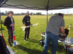 Paul had brought some of his LPR rockets to the launch. He flew his Equinox a couple of times on a D12-7 which flew quite nicely. On the first flight the deploy was right around apogee, although the deployment was expected later in the flight due to the 7 second delay. Ideally the delay should be around 5s, but we didn't have D12-5s on hand. On the second flight the delay was a couple of seconds after apogee which was expected. The rocket landed well under parachute.